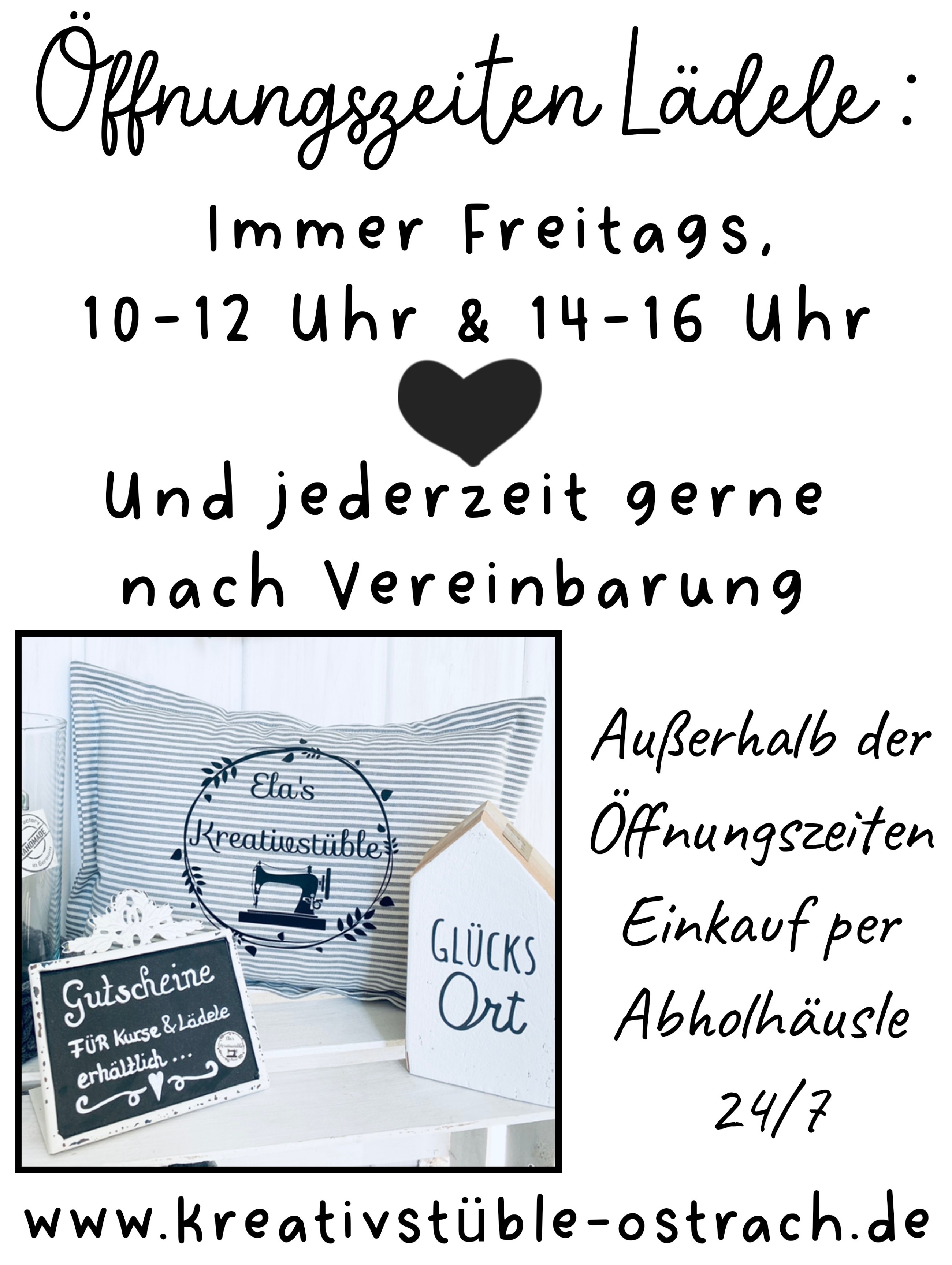 Gerne darfst du auch in meinem Mini- Lädele vorbeischauen, einfach vorher kurz melden, ob jemand da ist.